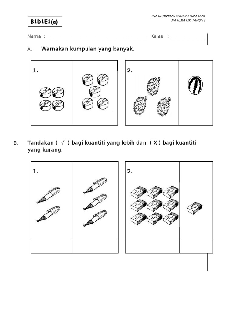 Contoh Soalan Matematik Tahun 1 Banyak Dan Sedikit